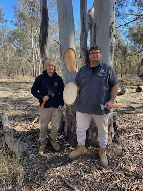 My name is Ben Young, and recently, I had the privilege of learning to cut a daanak from Ashley, a cultural role model, and Uncle Shane, a respected Elder.  Both shared their own techniques for making the daanak — a skill that begins not with tools, but with observation. You must look carefully at each individual tree, and its place in the landscape, to know if it is ready to give. In wetter times of year, more options appear; in dry times, the choices are fewer, reminding us that timing and patience are part of cultural practice.